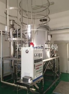 干燥速度快。料液经离心喷雾后表面积大大增加,在高温气流中,瞬间就可以蒸发95-98%的溶剂,完成干燥时间仅需数秒。产成品的颗粒基本能保持液滴近似的球状,产品具有良好的分散性,流动性和溶解性。干燥后产品不需要再进行粉碎和筛选,减少了生产工序。对于产品的粒径,松装度和溶剂含量在一定范围内,可改变操作条件进行调整。生产过程简化,自动化程度高,维护方便。本机组主要适用于化工,农药,高性能电池材料等行业。